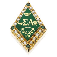 Crown Pearl Badge with Synthetic Emerald Points, 10K